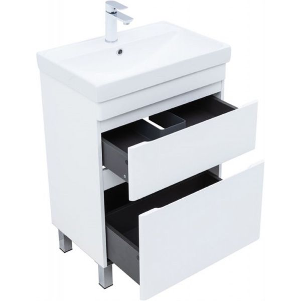 Тумба под раковину Aquanet  Слим 60 напольная, белый сатин – это сочетание практичности, надёжности и современного дизайна. Она подойдёт для ванных комнат в разных стилях. Устойчивые материалы и продуманные детали делают её удобной в использовании.