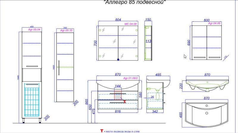 Тумба под раковину Aqwella Аллегро 85 Agr.01.08/2