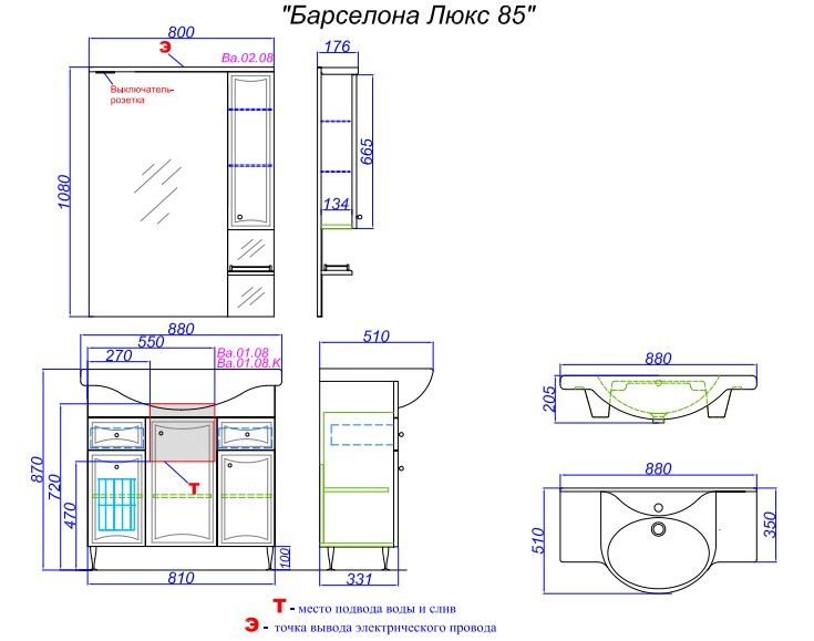 Тумба под раковину Aqwella Барселона-Люкс 85 Ba-L.01.08.K (нов BA0108K)
