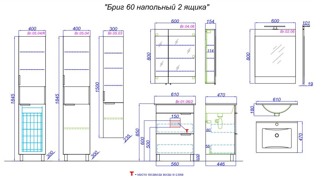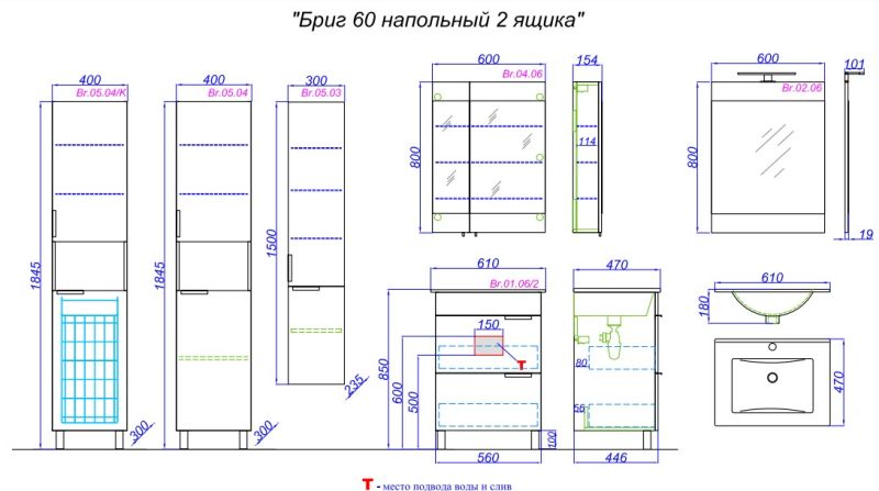 Тумба под раковину Aqwella Бриг 60 Br.01.06/2/W