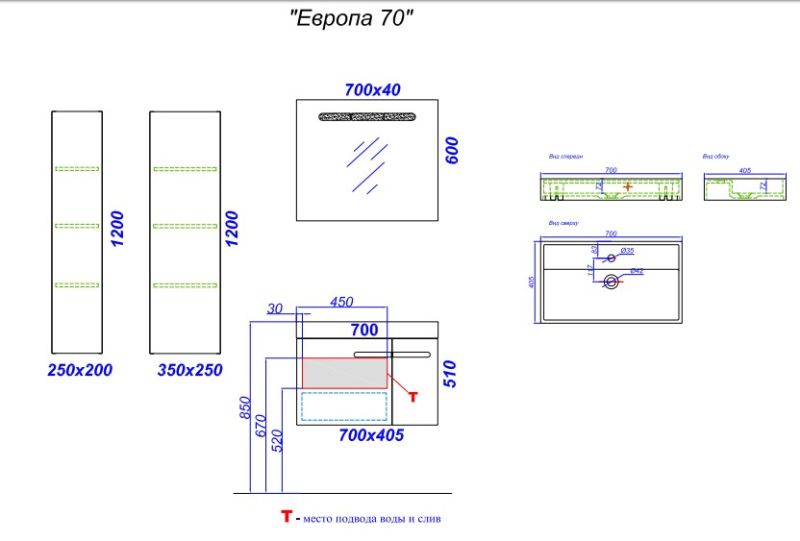 Ширина 70смВысота 43смГлубина 40смAqwella - это мебель для ванной премиум-класса.