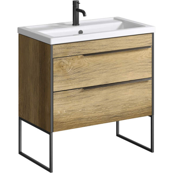 Тумба под раковину Aqwella Fargo FRG0108DB+FRGN440 80 смНапольная тумба в цвете дуб балтийский с двумя ящиками с умывальником