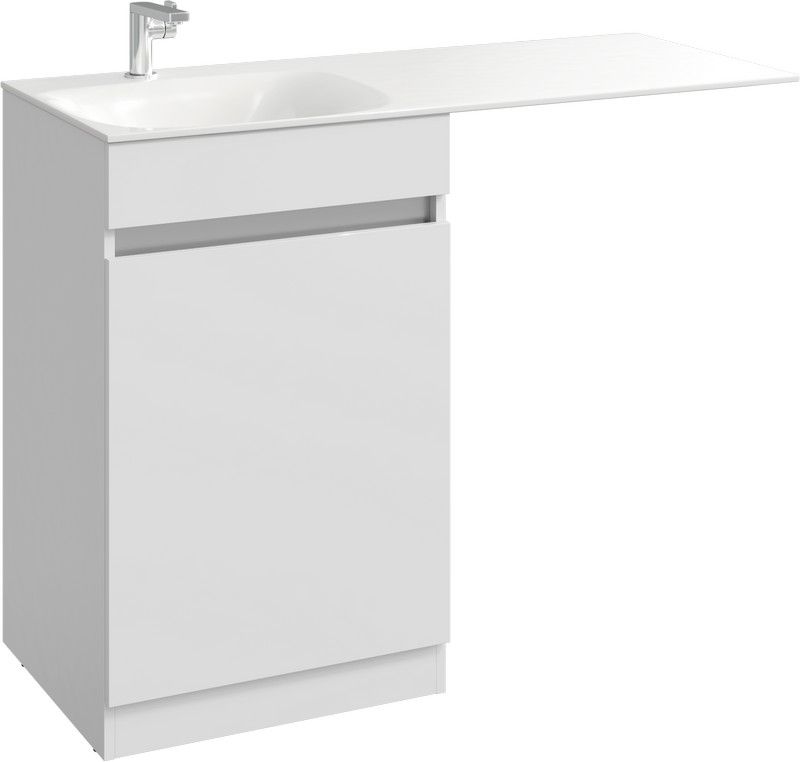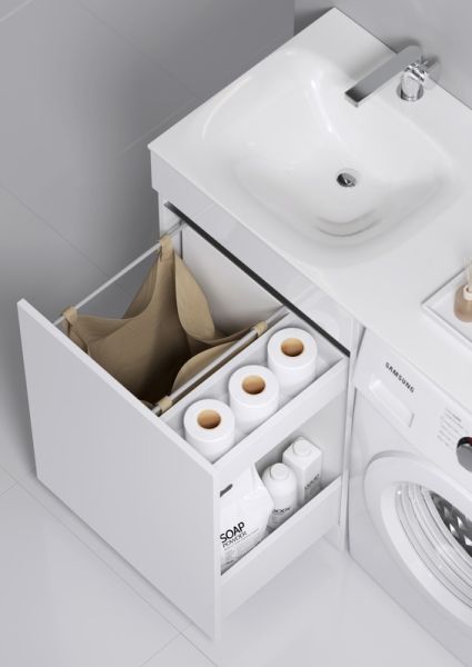 Forma напольная тумба с бельевой корзиной слева и двумя отсеками для хранения хозяйственных принадлежностей с умывальником с крылом под стиральную машинку 115 см