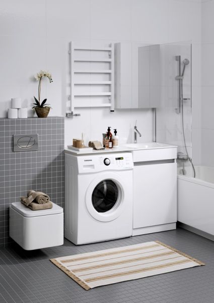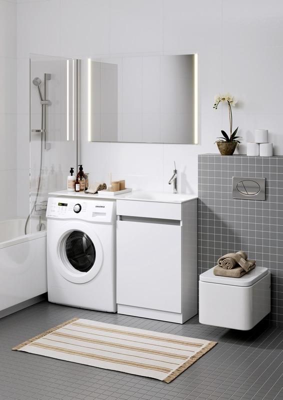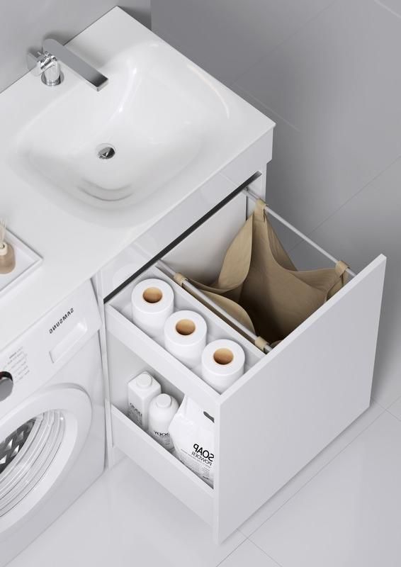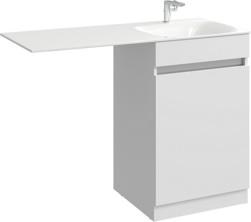 Forma напольная тумба с бельевой корзиной справа и двумя отсеками для хранения хозяйственных принадлежностей с умывальником с крылом под стиральную машинку 115 см