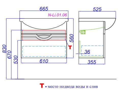 Тумба под раковину Aqwella Н-Лайн 65 N-Li.01.06