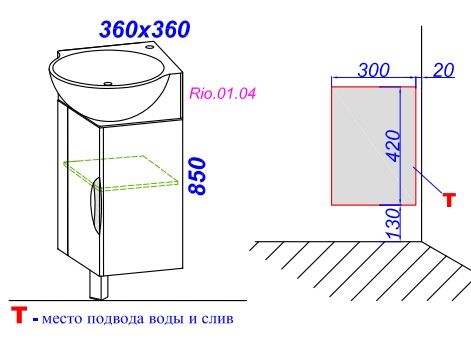 Тумба под раковину Aqwella Rio 36 см Rio.01.04
