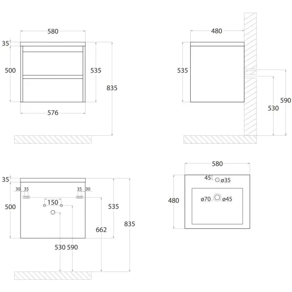 FAMILY-M База под раковину подвесная с двумя выкатными ящиками, Iron Stone, 580x480x550, Family-... Подробнее