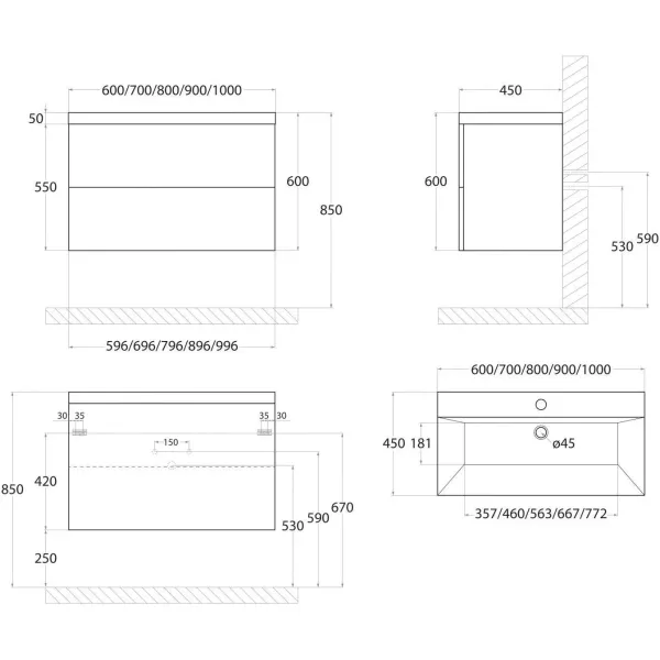 TORINO База под раковину подвесная с двумя выкатными ящиками, Палом AM-TORINO-900-2C-SO-PA-P Подробнее