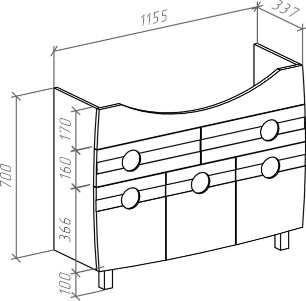 Тумба под раковину Bellezza Абрис 120см белый 00000006120