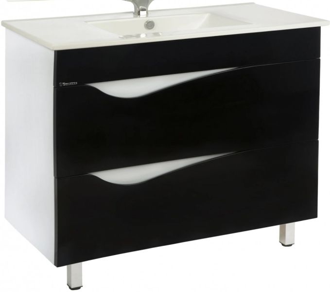 Тумба Bellezza Эйфория шириной 105 см в черном глянцевом исполнении — это смелое дизайнерское решение для просторных ванных комнат, где важны выразительность, функциональность и безупречный внешний вид. Модель с интегрированной раковиной и двумя объемными ящиками сочетает в себе глубину черного глянца, практичность хранения и устойчивость к влажной среде.
