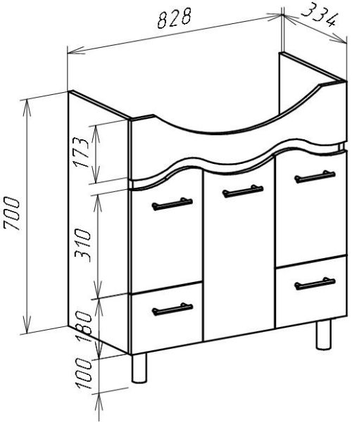 • Многоуровневое хранение: Три распашные дверцы и два выдвижных ящика позволяют организовать пространство для полотенец, косметики, бытовой химии и гигиенических принадлежностей, обеспечивая легкий доступ ко всему содержимому.