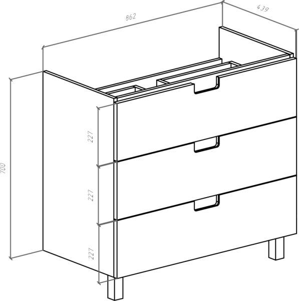 • Габариты: ширина 86.2 см, глубина 44 см, высота 47.2 см
