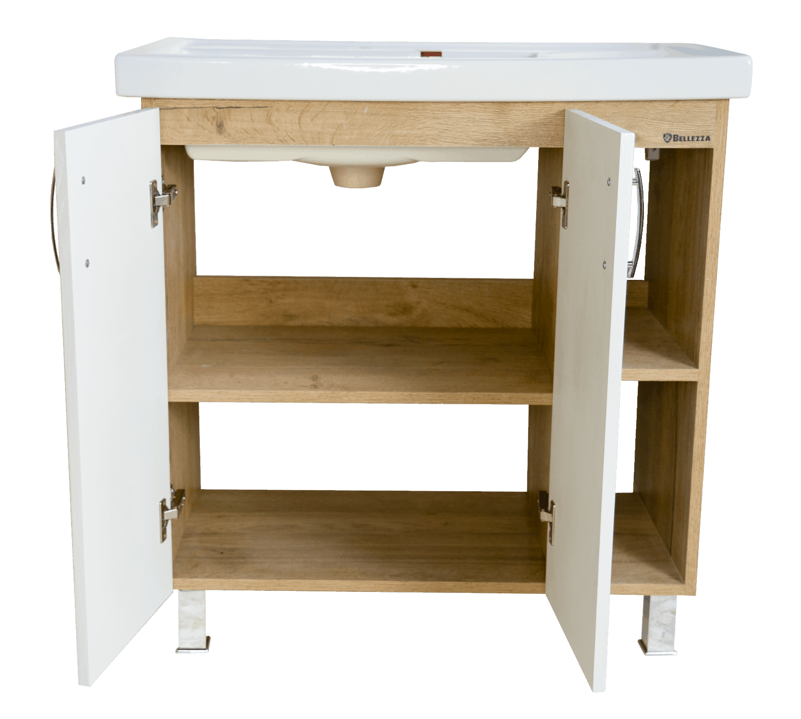 Компания Bellezza использует при производстве высококачественные водоотталкивающие материалы (МДФ, ВЛДСП), соответствующие всем необходимым требованиям безопасности. Коллекция выполнена в эксклюзивном дизайнерском решении в лучших традициях современного стиля. Белый, основной цвет исполнения Bellezza, отлично подходящий большинству дизайнерских решений. Тумба под раковину предусматривает удобную и вместительную систему хранения, состоящую из полочек, дверей. Качественные доводчики позволяют обеспечить мягкое и тихое закрывание.