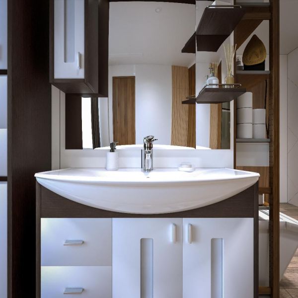 Удобная система хранения позволяет размещать все необходимое для гигиенических процедур, а её продуманные размеры отлично вписываются даже в небольшие помещения. Стильные ручки и элегантные фасады придают тумбе особый шарм, а разнообразие цветовых решений позволит выбрать модель, соответствующую любому интерьеру – от классического до модерн.