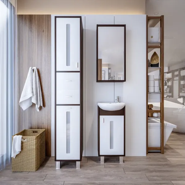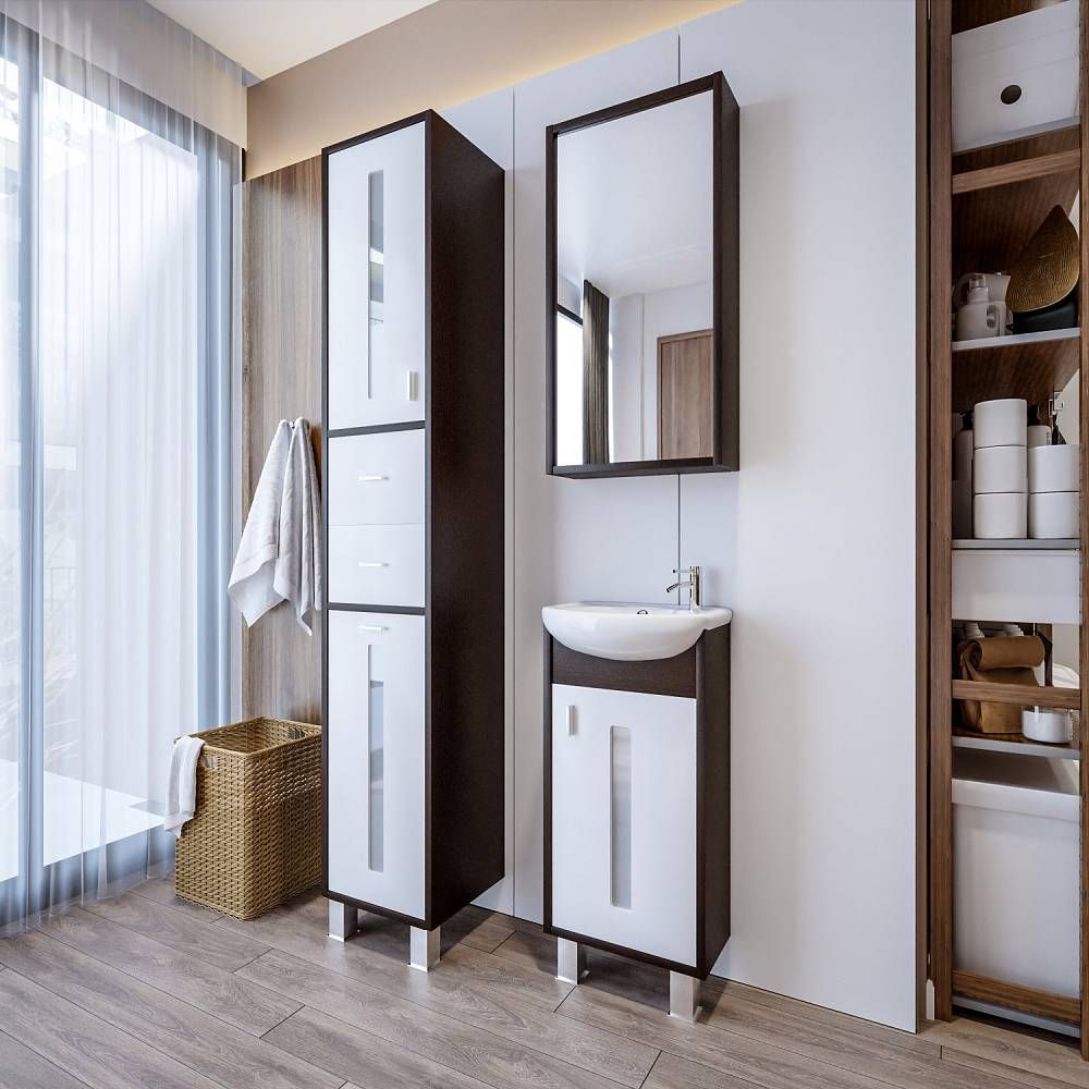 Удобная система хранения позволяет размещать все необходимое для гигиенических процедур, а её продуманные размеры отлично вписываются даже в небольшие помещения. Стильные ручки и элегантные фасады придают тумбе особый шарм, а разнообразие цветовых решений позволит выбрать модель, соответствующую любому интерьеру – от классического до модерн.