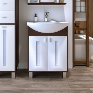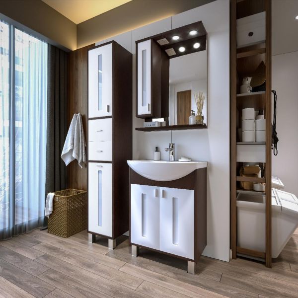 Удобная система хранения позволяет размещать все необходимое для гигиенических процедур, а её продуманные размеры отлично вписываются даже в небольшие помещения. Стильные ручки и элегантные фасады придают тумбе особый шарм, а разнообразие цветовых решений позволит выбрать модель, соответствующую любому интерьеру – от классического до модерн.