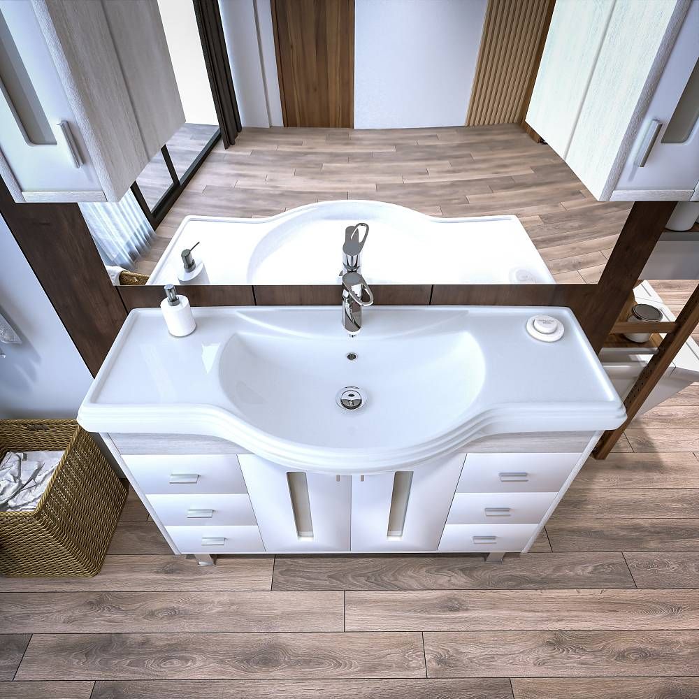 Удобная система хранения позволяет размещать все необходимое для гигиенических процедур, а её продуманные размеры отлично вписываются даже в небольшие помещения. Стильные ручки и элегантные фасады придают тумбе особый шарм, а разнообразие цветовых решений позволит выбрать модель, соответствующую любому интерьеру – от классического до модерн.