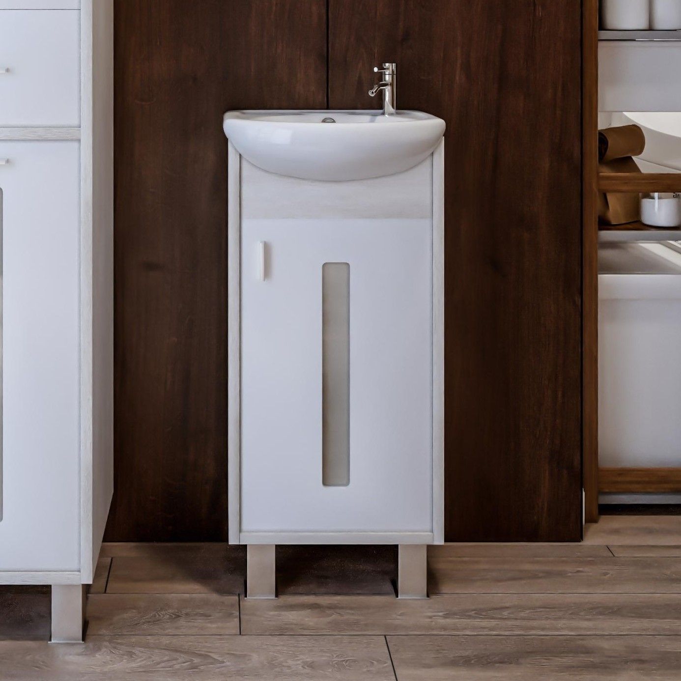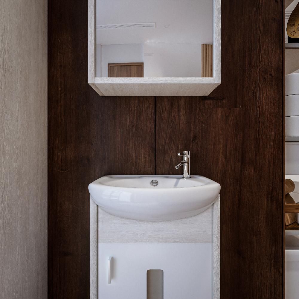 Удобная система хранения позволяет размещать все необходимое для гигиенических процедур, а её продуманные размеры отлично вписываются даже в небольшие помещения. Стильные ручки и элегантные фасады придают тумбе особый шарм, а разнообразие цветовых решений позволит выбрать модель, соответствующую любому интерьеру – от классического до модерн.