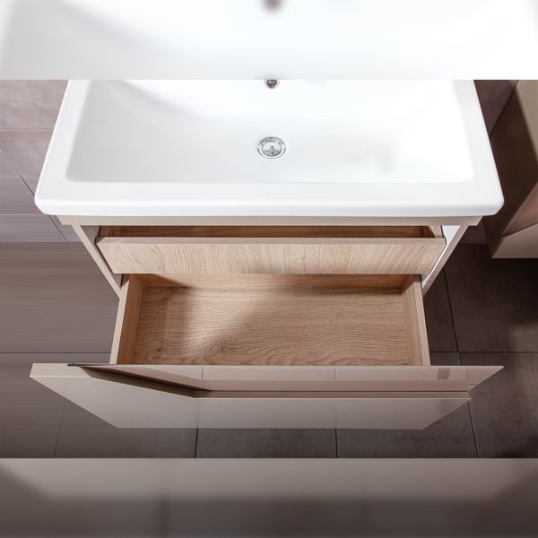 Функциональные особенности таких тумб варьируются от наличия выдвижных ящиков до встроенных систем хранения, которые помогают организовать пространство ванной комнаты. Важным аспектом является также возможность выбора различных цветовых решений и отделок, что позволяет гармонично вписать тумбу в любой интерьер – от классического до ультрасовременного.