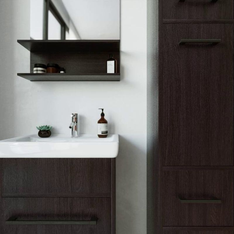 Удобная система хранения позволяет размещать все необходимое для гигиенических процедур, а её продуманные размеры отлично вписываются даже в небольшие помещения. Стильные ручки и элегантные фасады придают тумбе особый шарм, а разнообразие цветовых решений позволит выбрать модель, соответствующую любому интерьеру – от классического до модерн.