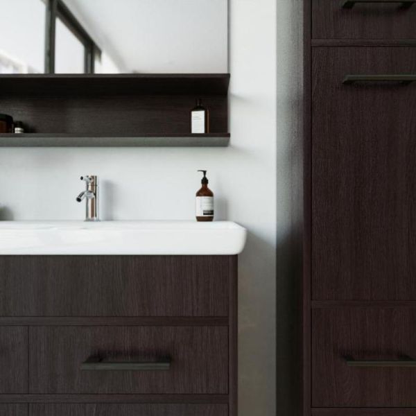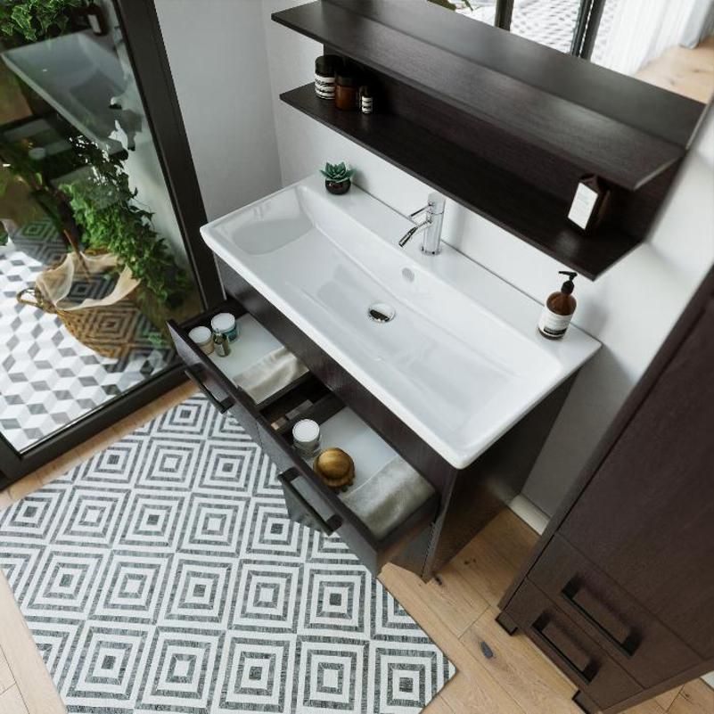 Удобная система хранения позволяет размещать все необходимое для гигиенических процедур, а её продуманные размеры отлично вписываются даже в небольшие помещения. Стильные ручки и элегантные фасады придают тумбе особый шарм, а разнообразие цветовых решений позволит выбрать модель, соответствующую любому интерьеру – от классического до модерн.