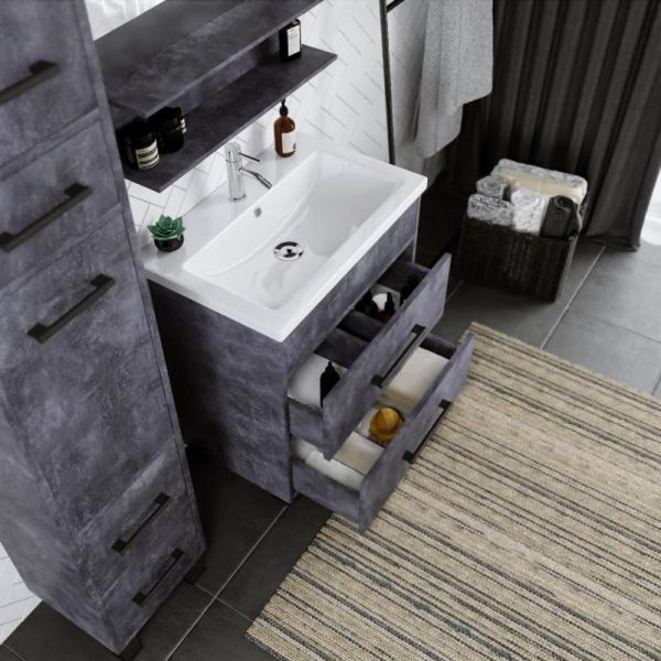 Удобная система хранения позволяет размещать все необходимое для гигиенических процедур, а её продуманные размеры отлично вписываются даже в небольшие помещения. Стильные ручки и элегантные фасады придают тумбе особый шарм, а разнообразие цветовых решений позволит выбрать модель, соответствующую любому интерьеру – от классического до модерн.