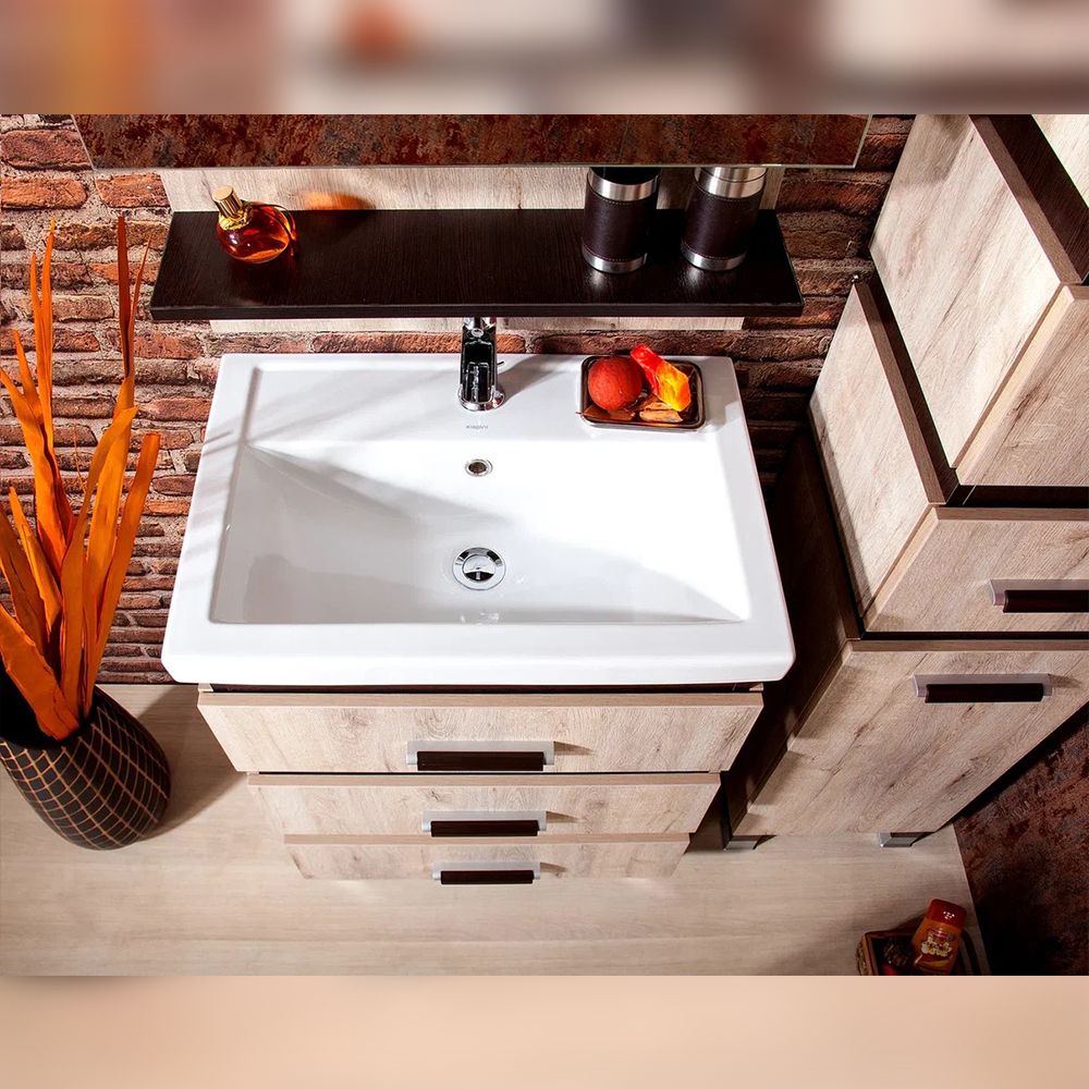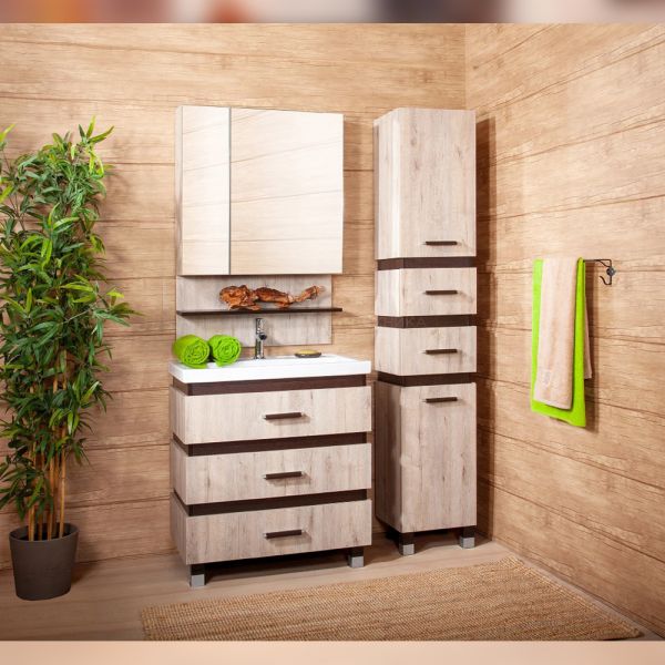 Удобная система хранения позволяет размещать все необходимое для гигиенических процедур, а её продуманные размеры отлично вписываются даже в небольшие помещения. Стильные ручки и элегантные фасады придают тумбе особый шарм, а разнообразие цветовых решений позволит выбрать модель, соответствующую любому интерьеру – от классического до модерн.