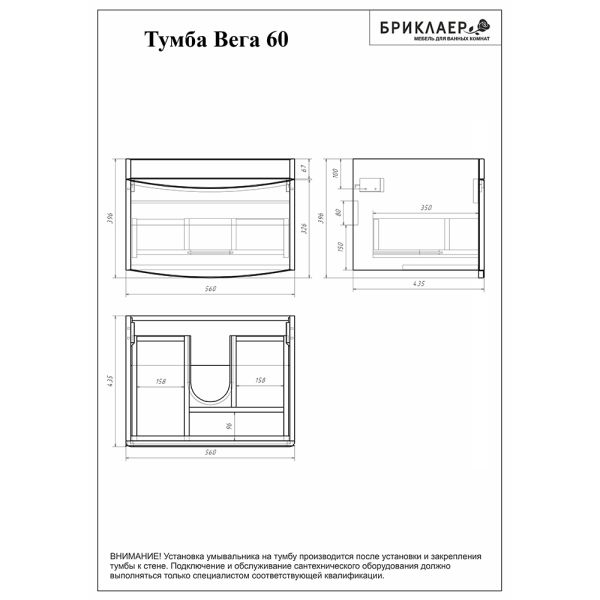 Тумба под раковину Бриклаер Вега 4627125414053 60 см белый