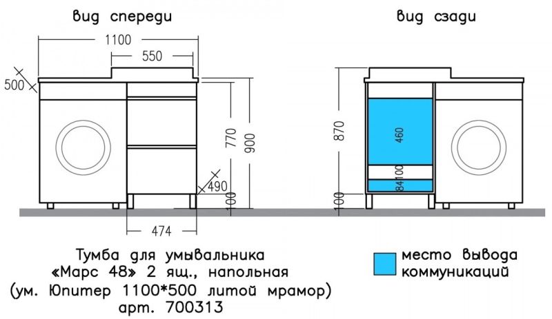 Тумба под раковину для стиральной машины СанТа Марс 700313 напольная 48см белый