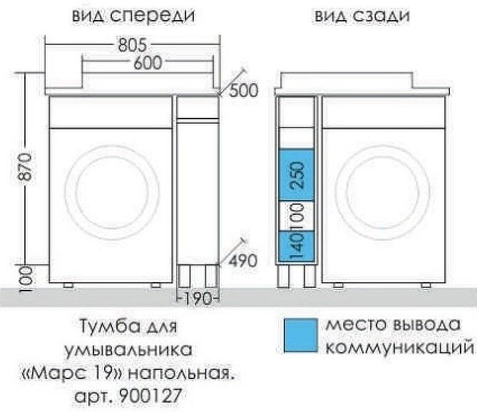 Тумба под раковину для стиральной машины СанТа Марс 900127 19см белый