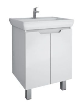 Тумба под раковину Dreja Q PLUS (D) 99.1004 60 см Белый глянецТумба Q PLUS (D), 55 см, подвесная/напольная, 2 дверцы, с опорами, белый глянец