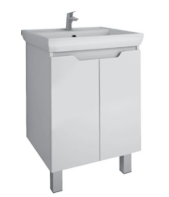 Тумба под раковину Dreja Q PLUS (D) 99.1008 55 см Белый глянецТумба Q PLUS (D), 55 см, подвесная/напольная, 2 дверцы, с опорами, белый глянец