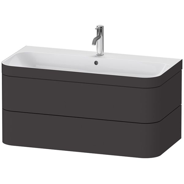 Тумба под раковину Duravit Happy D 2 Plus 97.5 HP4638O8080 подвесная чернаяDURAVIT HAPPY D.2 PLUS Комплект мебели 975х490х468 мм, 2 ящ, с 1 отв для смес, в компл.с сиф и донным клап, раковина bi-color, цвет Графит супермат