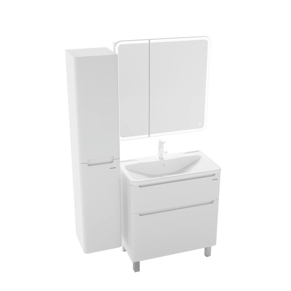 Тумба напольная Адель 80 см - в белом глянцевом цвете, интегрированные ручки добавляют современный дизайн и строгий стиль.