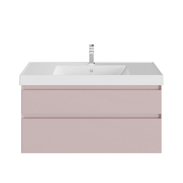Подвесная тумба в цвете мальва (розовая) матовая с двумя выдвижными ящиками. Ящики закрываются плавно и бесшумно. Внутренняя отделка ящиков напоминает фактуру ткани. Сочетается с раковиной CUBO шириной 100 см Изделия из ДСП, МДФ, а также изделия из металла требуют правильного ухода и эксплуатации. При установке и дальнейшей эксплуатации изделий, следует обратить внимание на их расположение в ванной комнате: они должны быть установлены вдали от источников тепла; температура воздуха в помещении должна быть в пределах +2 — +25 °С, а влажность воздуха не должна превышать 45%-70%. Во избежание появления пятен, отслоения облицовки и коррозии металла, не допускать скопления воды и жидкостей на поверхностях изделий и как можно скорее протереть сухой мягкой тканью участок, контактирующий с жидкостью. Соблюдайте правила ухода за изделиями из металла и они прослужат Вам очень долго.