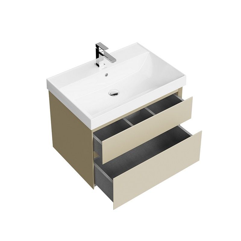 Подвесная тумба в цвете лимо (бежевая) матовая с двумя выдвижными ящиками. Ящики закрываются пла... Подробнее