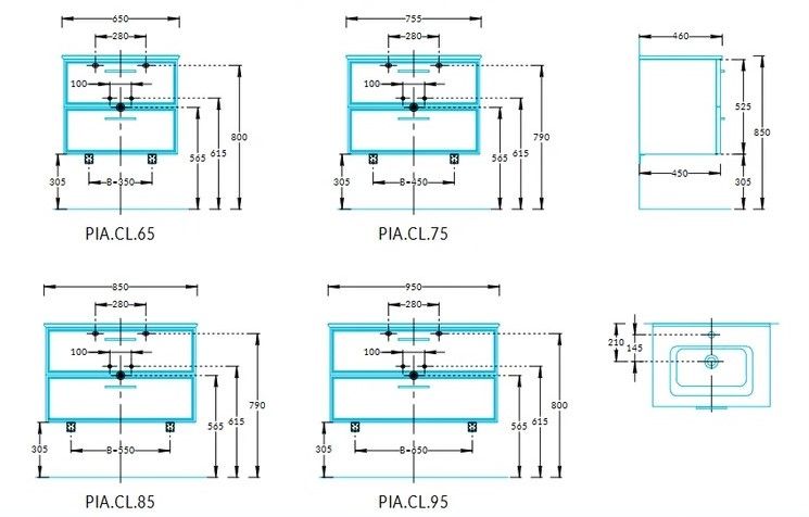 Тумба PIANO Classic шириной 85 см подходит для раковины PIANO соответствующей ширины. Мебель выполнена из МДФ и покрыта качественной немецкой пленкой ПВХ. Ящики выдвижного типа снабжены ручками в цвете «потертый никель», который хорошо сочетается с хромированными смесителями. В комплект входят крепления, гарантийный талон и инструкция по монтажу.