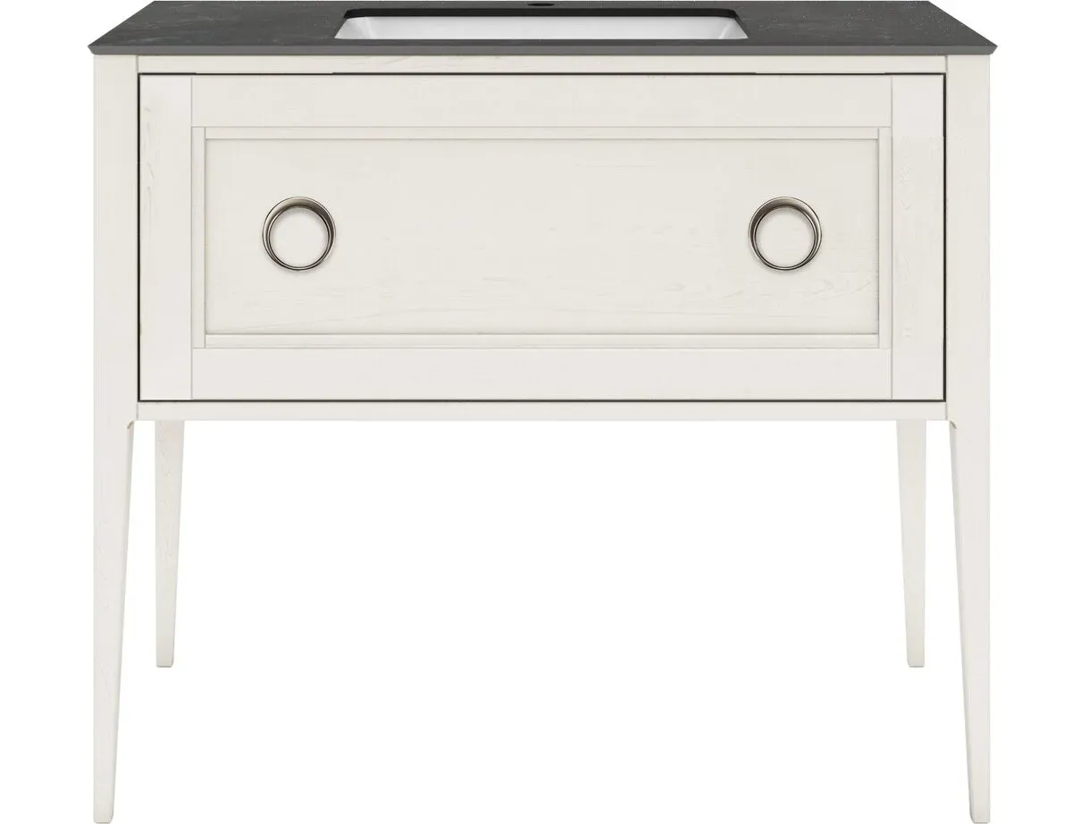 Напольная тумба с одним выдвижным и одним внутренним ящиками выполнена из массива ясеня с отделкой «открытая пора». Вместительный ящик с плавным закрыванием украшен двумя крупными ручками. Сочетается с керамическими столешницами PLAZA Classic шириной 100 см. Подходит для установки раковин с типом монтажа «накладная на столешницу» и «встраиваемая сверху».