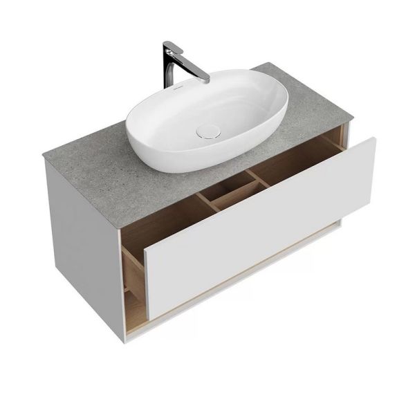 Подвесная тумба в белом глянцевом цвете с одним выдвижным ящиком и открытой полкой. Вместительный ящик оснащен системой открывания Push-to-Open. Сочетается со столешницами PLAZA Modern и накладными раковинами серии PLAZA. Изделия из ДСП, МДФ, а также изделия из металла требуют правильного ухода и эксплуатации. При установке и дальнейшей эксплуатации изделий, следует обратить внимание на их расположение в ванной комнате: они должны быть установлены вдали от источников тепла; температура воздуха в помещении должна быть в пределах +2 — +25 °С, а влажность воздуха не должна превышать 45%-70%. Во избежание появления пятен, отслоения облицовки и коррозии металла, не допускать скопления воды и жидкостей на поверхностях изделий и как можно скорее протереть сухой мягкой тканью участок, контактирующий с жидкостью. Соблюдайте правила ухода за изделиями из металла и они прослужат Вам очень долго.