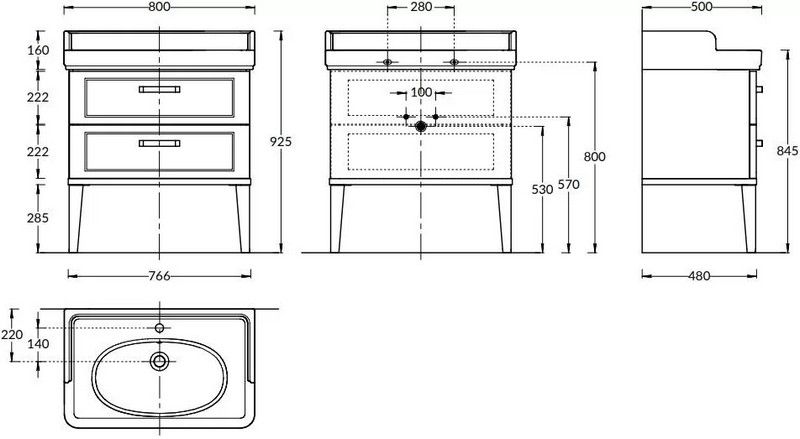 В варианте с двумя ящиками у тумбы POMPEI появляются две высокие ножки. Фасад мебели выполнен со скруглениями по двум сторонам. Вместительный ящик тумбы внутри сделан с отделкой «лён антрацит», характерной для большинства новых моделей мебели KERAMA MARAZZI.