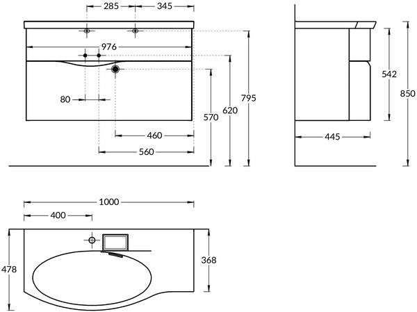 Белая матовая тумба с гнутым фасадом с левым расположением овальной зоны, ширина 100 см. Внутренняя планка окрашена в песочный цвет. Тумба представлена в версии с двумя ящиками, снабжена врезными удобными ручками, которые образуют на фасаде изящную «улыбку». Благодаря смещенному сливу раковины, верхний ящик не имеет вырез под сифон. Сочетается с раковиной Riva с левым расположением чаши.