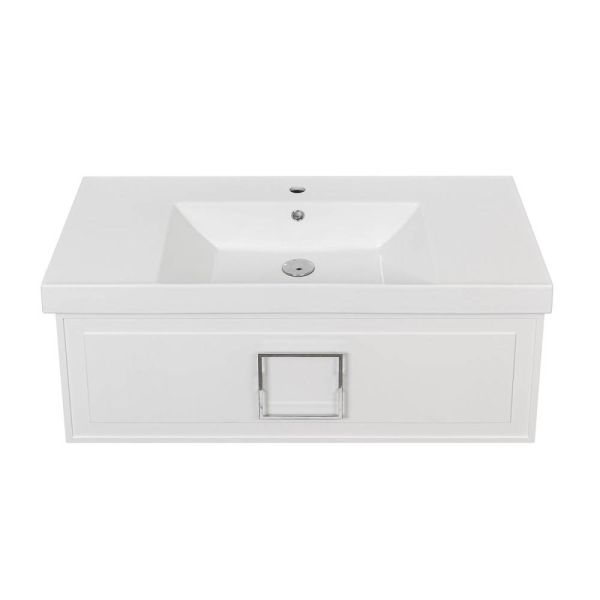 Тумба под раковину La Fenice Cubo FNC-01-CUB-B-100 97.6 смПодвесная тумба La Fenice Cubo FNC-01-CUB-B-100 обладает рядом неоспоримых преимуществ. Тумбу можно оснастить встраиваемой раковиной (арт.CU.NN.100), либо же приобрести столешницу в подходящем цветовом решении (арт. FNC-03-PL01-100, FNC-03-VS03-100) и установить на неё раковину-чашу. К данной тумбе необходимо выбрать один из трех цветов ручки (FNC-04-CUB-B-168 - белая; FNC-04-CUB-N-168 - черная; FNC-04-CUB-C-168 - хром), ручка включена в стоимость тумбы. За счет входящего в комплект сифона Prevex, тумба обладает полноценным ящиком для хранения (без выреза). Ящик выполнен в фантазийной цветовой гамме "Лён антрацит". Тумба оснащена скрытыми доводчиками плавного закрывания частичного выдвижения Samet (Турция) и подвесным регулируемым механизмом Camar (Италия). Фасад и корпус тумбы покрыты краской и матовым лаком, что является надёжной защитой от влаги. Прекрасным и функциональным дополнением к тумбе станет пенал La Fenice Cubo белого цвета FNC-05-CUB-B-30