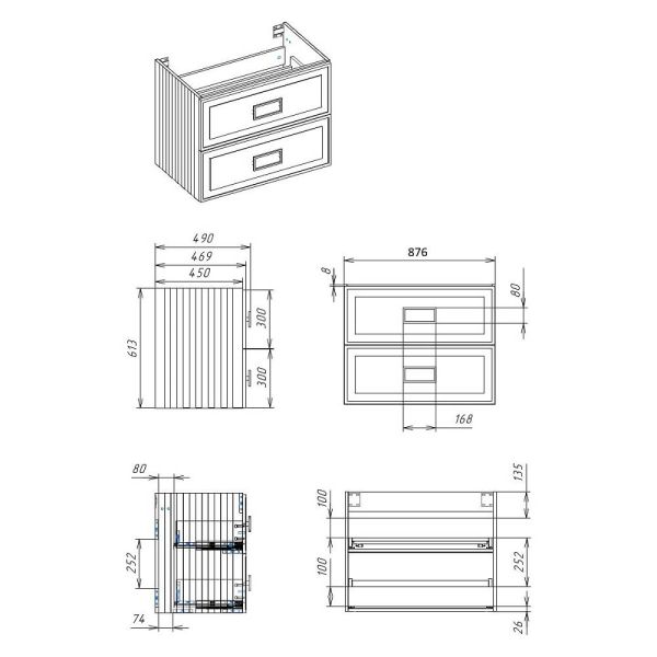 Тумба под раковину La Fenice Cubo FNC-01-CUB-B-90-2 87.6 смПодвесная тумба La Fenice Cubo TWIN FNC-01-CUB-B-90-2 обладает рядом неоспоримых преимуществ. Тумбу можно оснастить правосторонней или левосторонней встраиваемой раковиной (арт. CU.NN.90R или CU.NN.90L), либо же приобрести столешницу в подходящем цветовом решении (арт. FNC-03-PL01-90, FNC-03-VS03-90) и установить на неё раковину-чашу. К данной тумбе необходимо выбрать белые или черные ручки, которые включены в стоимость тумбы (FNC-04-CUB-B-80 - белые; FNC-04-CUB-N-80 - черные). За счет входящего в комплект сифона Prevex, тумба обладает полноценными ящиками для хранения (без выреза). Ящики выполнены в фантазийной цветовой гамме "Лён антрацит". Тумба оснащена скрытыми доводчиками плавного закрывания частичного выдвижения Samet (Турция) и подвесным регулируемым механизмом Camar (Италия). Фасад и корпус тумбы покрыты краской и матовым лаком, что является надёжной защитой от влаги. Прекрасным и функциональным дополнением к тумбе станет пенал La Fenice Cubo белого цвета FNC-05-CUB-B-30
