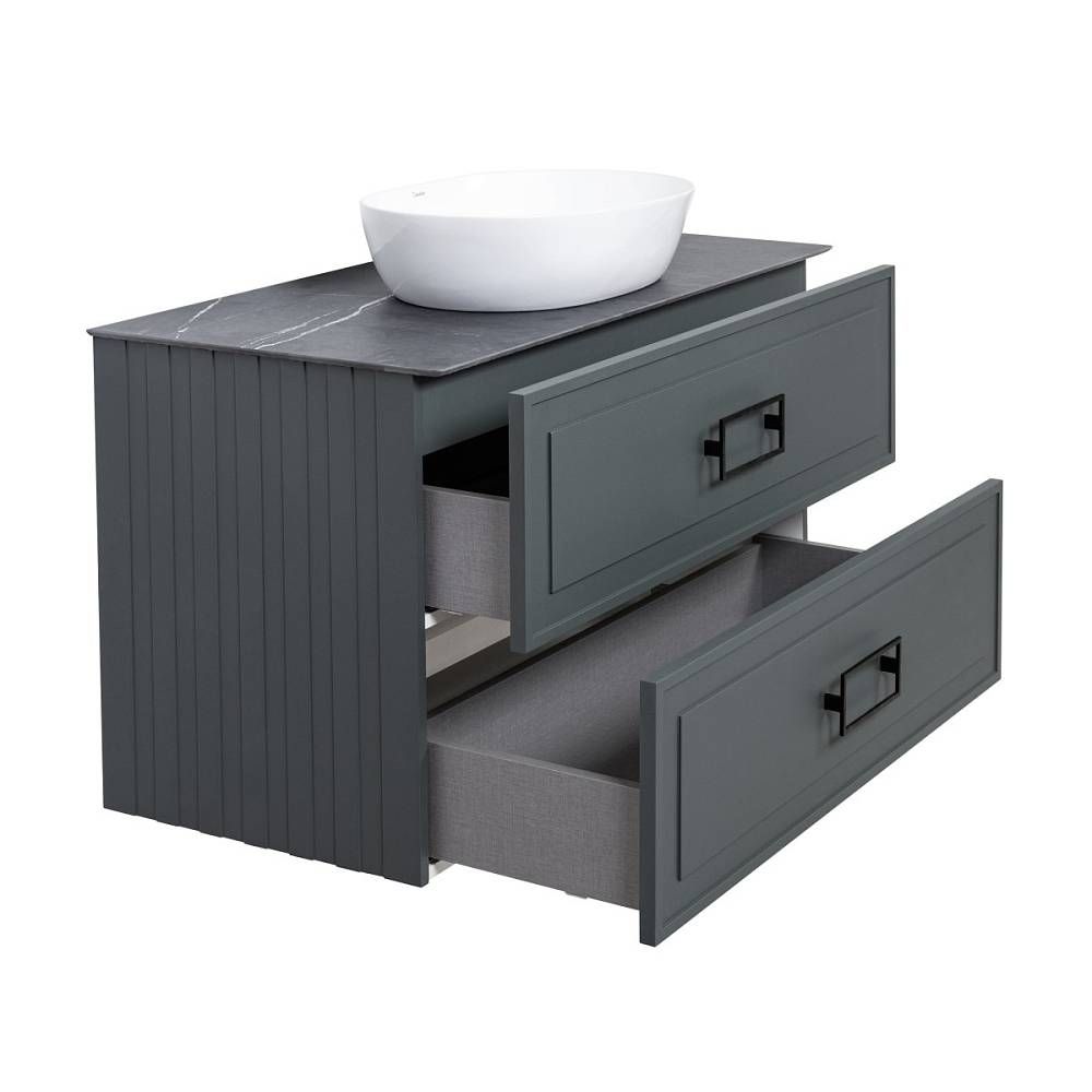 Тумба под раковину La Fenice Cubo TWIN FNC-01-CUB-G-100-2 97.6 смПодвесная тумба La Fenice Cubo TWIN FNC-01-CUB-G-100-2 обладает рядом неоспоримых преимуществ. Тумбу можно оснастить встраиваемой раковиной (арт.CU.NN.100), либо же приобрести столешницу в подходящем цветовом решении (арт. FNC-03-PL01-100, FNC-03-VS03-100) и установить на неё раковину-чашу. К данной тумбе необходимо выбрать белые или черные ручки, которые включены в стоимость тумбы (FNC-04-CUB-B-80 - белые; FNC-04-CUB-N-80 - черные). За счет входящего в комплект сифона Prevex, тумба обладает полноценными ящиками для хранения (без выреза). Ящики выполнены в фантазийной цветовой гамме "Лён антрацит". Тумба оснащена скрытыми доводчиками плавного закрывания частичного выдвижения Samet (Турция) и подвесным регулируемым механизмом Camar (Италия). Фасад и корпус тумбы покрыты краской и матовым лаком, что является надёжной защитой от влаги. Прекрасным и функциональным дополнением к тумбе станет пенал La Fenice Cubo серо-зеленого цвета FNC-05-CUB-G-30