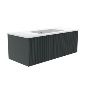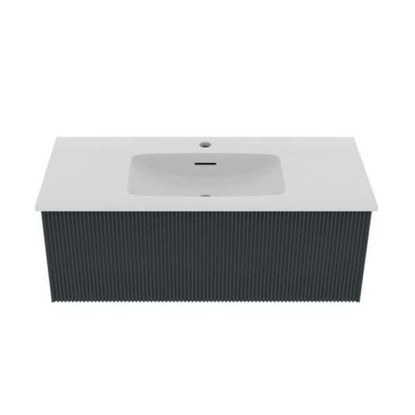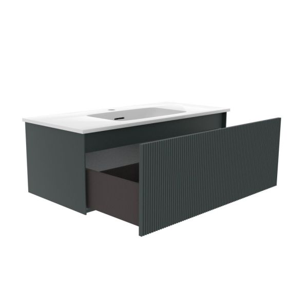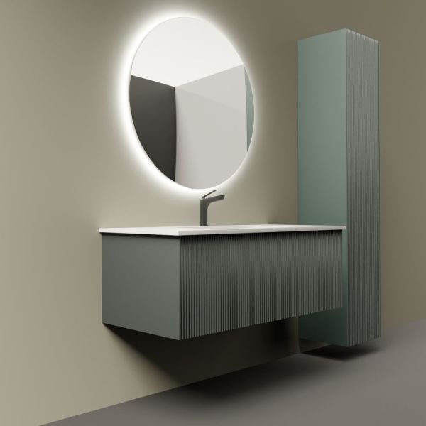 Тумба под раковину La Fenice Terra FNC-01-TER-G-100 95 смНовая коллекция Terra - это история долгого и кропотливого поиска уникального, ни на кого не похожего дизайна, в сочетании с современным качеством. Ультратонкая и идеально ровная раковина, механизм открывания push-to-open, плавное закрывание дверей и ящиков.Подвесная тумба La Fenice Terra FNC-01-TER-G-100 обладает уникальным, ни на что не похожим дизайном. Запатентованная система Samet Push-Open Soft Close позволяет совмещать бесшумное закрывание и открытие при помощи касания. Фасад и корпус тумбы покрыты краской и матовым лаком, что является надёжной защитой от влаги. Ультратонкая и идеально ровная раковина вкупе с современным качеством тумбы позволят почувствовать незабываемый комфорт в ванной комнате. Прекрасным и функциональным дополнением к тумбе станет пенал La Fenice Terra серо-зеленого цвета FNC-05-TER-G-30