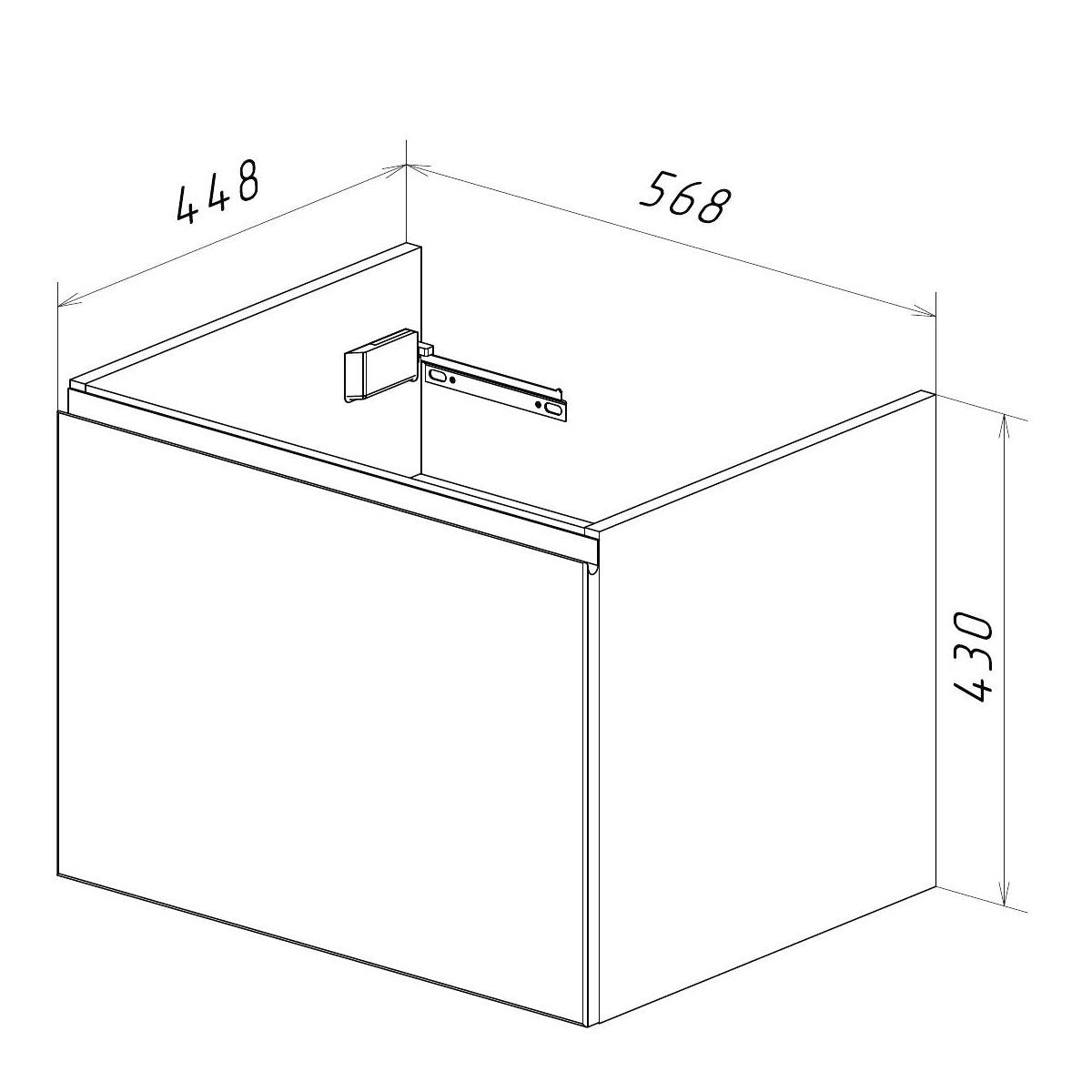 • Габариты без раковины (ШГВ): 568х448х430 мм;