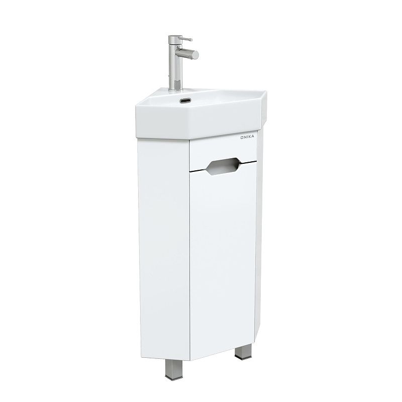 Угловая напольная тумба для ванной комнаты Onika Айленд 35 сочетает в себе стильный минималистичный дизайн, белую глянцевую поверхность и высочайшее качество исполнения. Тщательно продуманная конструкция позволяет занять минимум места, а угловая форма поможет с пользой использовать пространство, которое зачастую остается незадействованным. За дверью скрывается вместительное внутреннее пространство, разделенное полкой. Корпус тумбы выполнен из ЛДСП, фасад - из ЛМДФ в пленке, устойчивых к механическим воздействиям, перепадам температур и высокой влажности. Интегрированная в фасад ручка позволяет сделать эксплуатацию мебели более удобной и практичной.