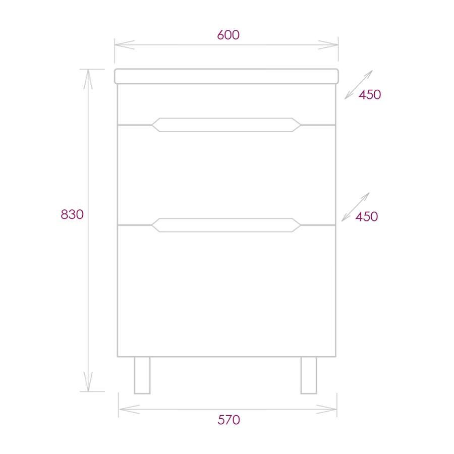 Размеры тумбы без учета раковины 57x45x66 см.