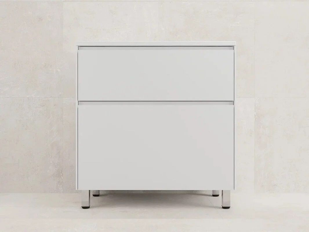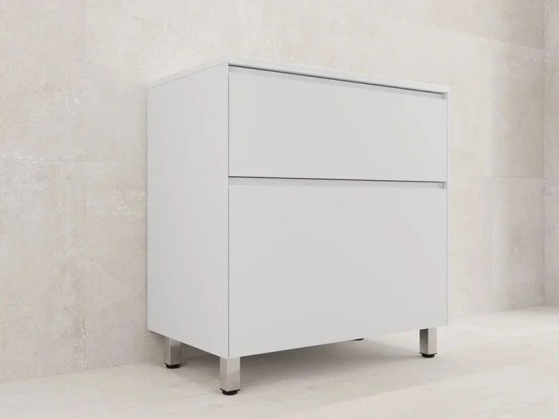 • Матовая белая поверхность придает тумбе современный и элегантный вид. Напольная конструкция обеспечивает устойчивость и надежность, а также легкий доступ к содержимому.