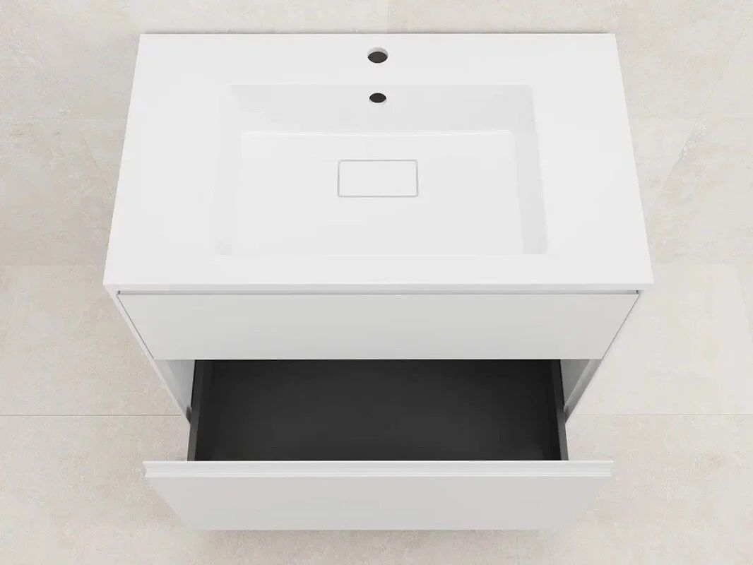 • Тумба оборудована двумя вместительными ящиками, которые позволяют удобно организовать хранение косметических средств, полотенец и других предметов.
